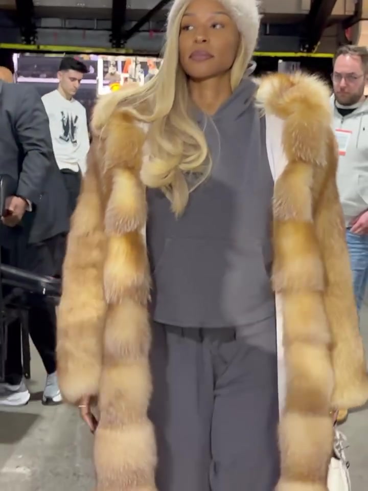 • 貂皮大衣老詹妻子萨瓦娜这身装扮看上去就很贵